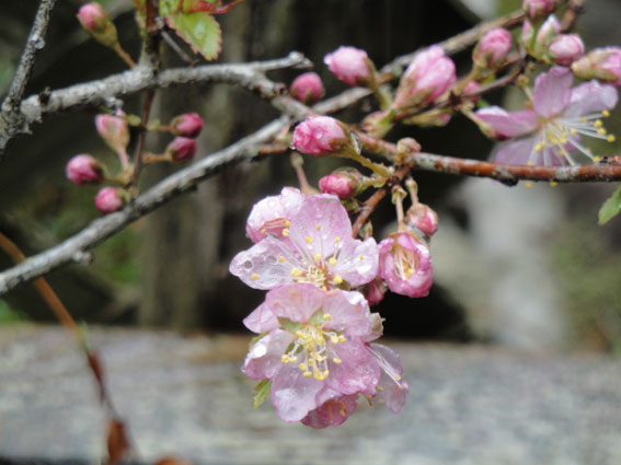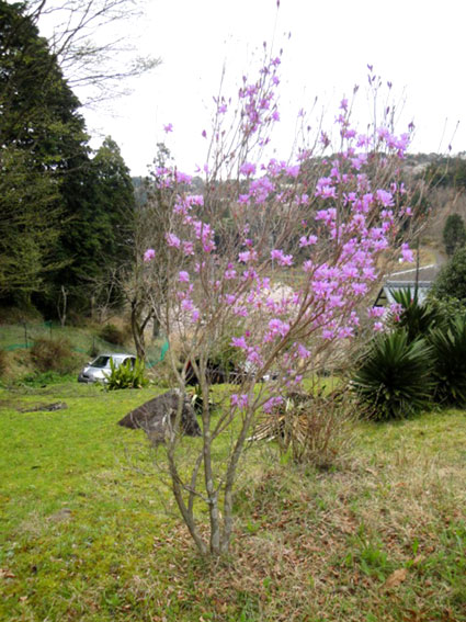 拙庭では、薄紫色のつつじ(玄海つつじ)が見頃です。つつじの中では最も早い開花である。葉は他のつつじと異なり秋に落葉する。今は、まさに枯れ木に花であるが、如何にも早春の花という感じがする。実は、入り口近くの吉野桜も隣家の主人が植えたものらしい。既に散り始めているが、今週一杯は何とか持ってほしいものである。