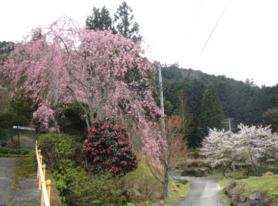 隣家のしだれ桜が見頃を迎えました。家の主人が丁度、軽トラで出かけるところでした。「見事ですね」と声をかけたら、嬉しそうな表情で挨拶した。この主人、花が好きらしい。棚田の畔には色とりどりの紫陽花を植えてある。田植えが済んだ頃の景観は見事と言う外ない。いつまでも残して欲しい景観だが、色々と苦労もあるらしい。
