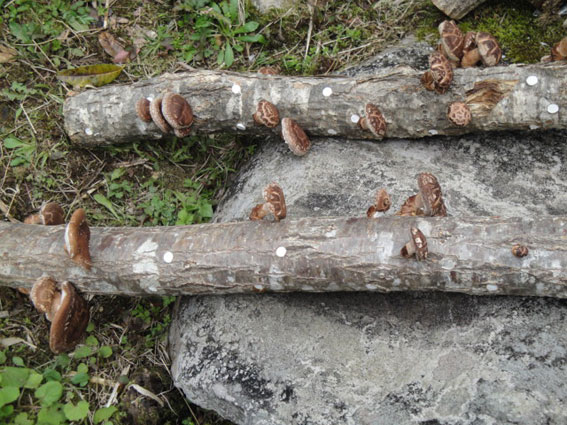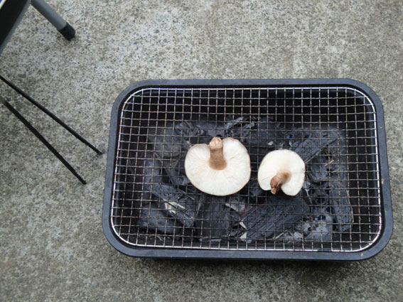 待ち切れずに、椎茸の原木から食べごろの2本を収穫した。早速、裏のテラスで炭火による網焼きで頂いた。解説によると、本当の美味しさを味わうには、傘を下にして網焼きし、ひだにぷつぷつと水滴が出てきたところで塩をふり、柄を持ってそのまま、丸かじりするのが良いそうだ。素朴で野性的であるが椎茸の風味を活かした食べ方らしい。今日は解説の通りにして食べたが、味は最高、何も言うことはありません。ビールも美味かった。なお、ひだの部分を焼くと香りが飛んでしまい、うま味が半減するらしい。これからは毎日食べられそうだが、色々な料理を試してみたい。