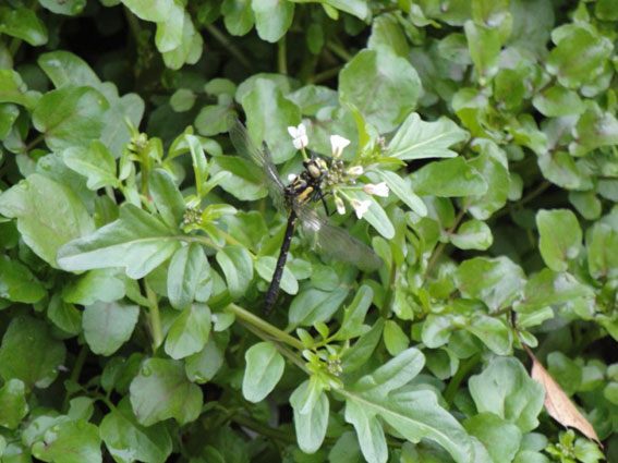 「コオニヤンマ」が沢のクレソンの花??にしがみついていた。体長は概ね5㎝。成長すると7~8㎝になるが、まだ羽化したばかりのようで身動き一つしない。でも、この沢で羽化したかどうかは不明である。もしこの沢で育ったとしたら、いったい何を餌としていたのだろうか。沢には、精々、蛍の幼虫の餌となるカワニナと沢蟹が棲むくらいで、餌になるような水生昆虫は見かけない。昨年の夏から秋にかけ、この沢沿いをコオニヤンマが頻繁に飛びまわっていたが、その時は、てっきり、近くの北又川から飛来して来たものと思っていた。少し早すぎる羽化だが、この沢で育ったとしたら大歓迎である。