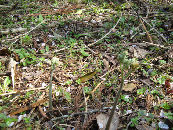 拙亭前の桜は散り始め、既に盛が過ぎた。でも目の前の林道を車が頻繁に通る。今更桜見物ではないだろう。もしかして山菜がお目当てかもしれない。私も早速、裏山に入り、昨年、目星を付けていた場所を散策した。やはりワラビが彼方此方に芽を出していた。二、三日も経てば食べ頃を迎えそうだった。これでまた一つ楽しみが増えた。