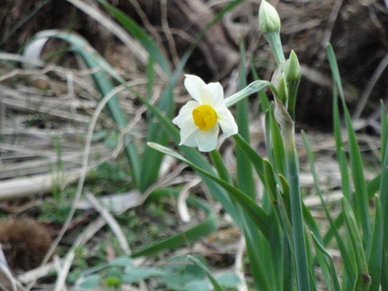 今日も、比較的暖かな朝を迎えた。庭では寒咲き水仙がやっと重い腰を上げて花を咲かせてくれました。沢では「ふきのとう」が蕾を開き、中から沢山の花芽が顔を出しています。摘み取るタイミングを逸したみたいです。