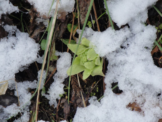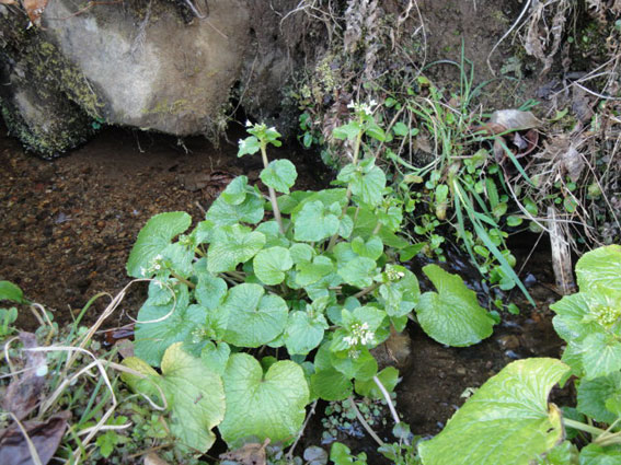 沢を流れる水は庭一面に霜が降りた冬の朝でも意外と温かい。「水温む」は春を表す季語なのだが、拙庭では冬に水温む。でも、夏になれば暑い外気との比較でこれが冷たく感じるのである。だから、沢を根城とする植物は一年中、気持ち良さそうに見え、羨ましい位だ。今朝は、一昨日の降雪で裏山の雪解け水が沢に流れ込み普段より多少冷たく感じたが皆、いたって元気であった。