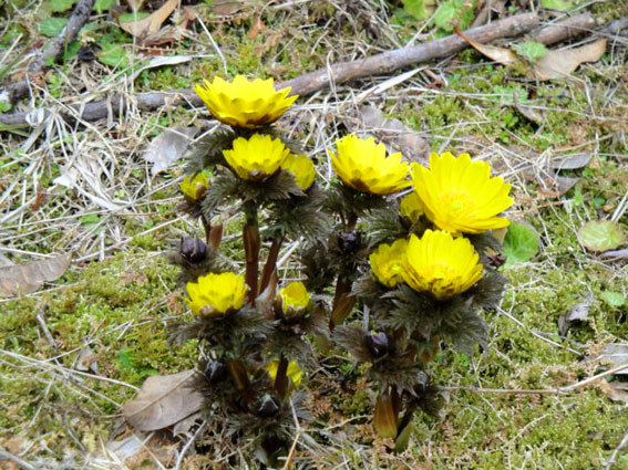 庭の片隅で芽を出した福寿草は、今月の10日に開花したが、その翌日には、寒の戻りで花を閉じ、その後は、霜や雪に見舞われるなどして、一向に花開く様子を見せなかった。ところが今日、陽気が良かった所為もあって、再び開花した。庭は、この黄色の花で、一気に華やいだ雰囲気になった。