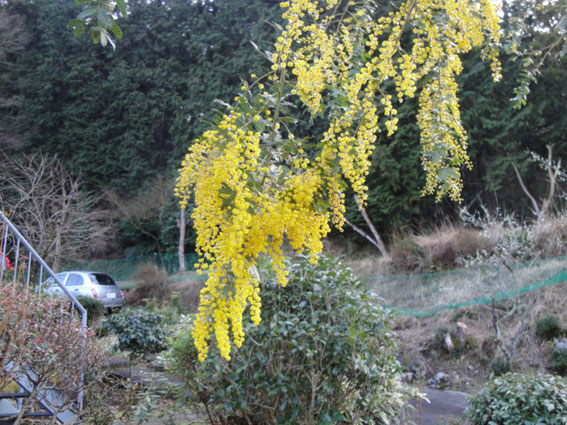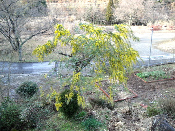 ミモザが開花した。黄色の小さな花が房状に枝を飾る。別名「銀葉アカシヤ」とも言う。昨年、枝の半分を思い切って強剪定した。成長が早く、放置しておくと細かい葉を付けた枝が大きく張り出して、菜園の日照を遮るからだ。さらに、花の黄色が鮮やか過ぎて、周りの素朴な景色と調和してない。この樹はどちらかというと都会向きではないかと思う。いずれにしても私の好みではない。