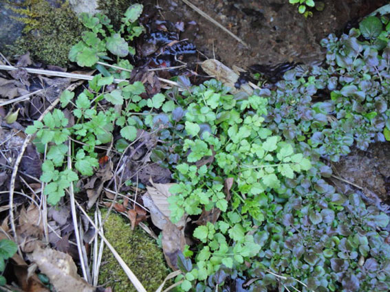 クレソンの中に水辺の植物「せり」も負けじと陣取る。独特の香りがする。