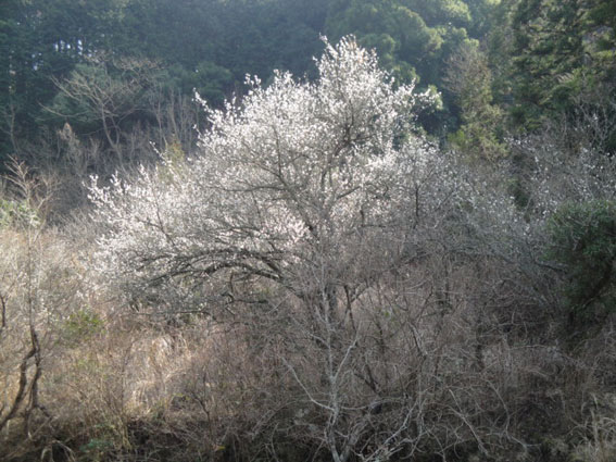 裏山の梅の木、満開ではありません。雪で覆われて白いのです。