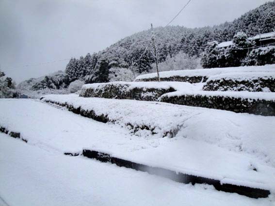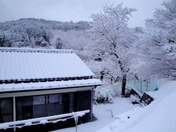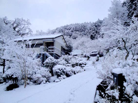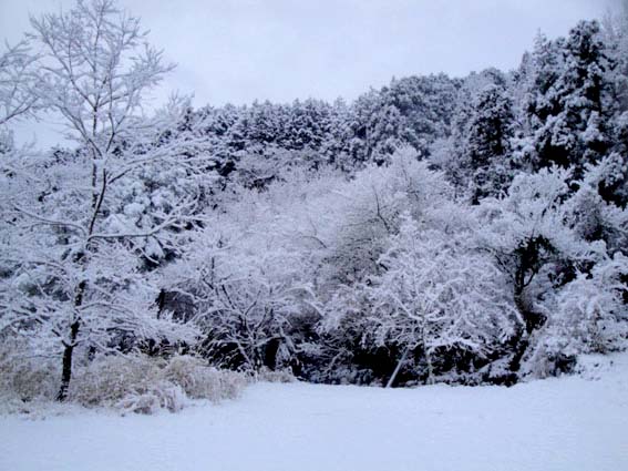 昨夜来の降雪で桂谷はすっかり雪で覆われました。外は一面の銀世界です。早速、周囲をデジカメで撮りました。下掲画像はモノクロではありません。れっきとしたカラー写真です。